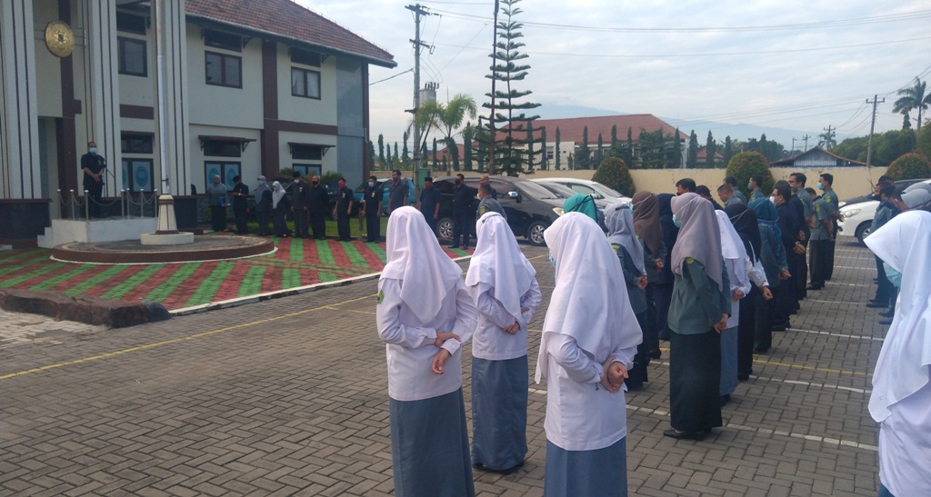 Senin, (1/03/2021) Pkl.08.00 WIB. Mengawali bulan Maret Tahun 2021 ini, bertempat di halaman kantor Pengadilan Agama Slawi Kelas IA melaksanakan apel pagi senin yang diikuti seluruh Hakim, Pejabat Struktural, Pejabat Fungsional, para Staff dan Tenaga Honorer PA Slawi. Bertindak selaku Pembina apel adalah Drs. H. Sobirin, M.H yang merupakan Ketua Tim Pembangunan Zona Integritas Pengadilan Agama Slawi, komandan apel Moh Rizal Fahmi dan pembawa acara Aprilia Farchataeni, S.H.