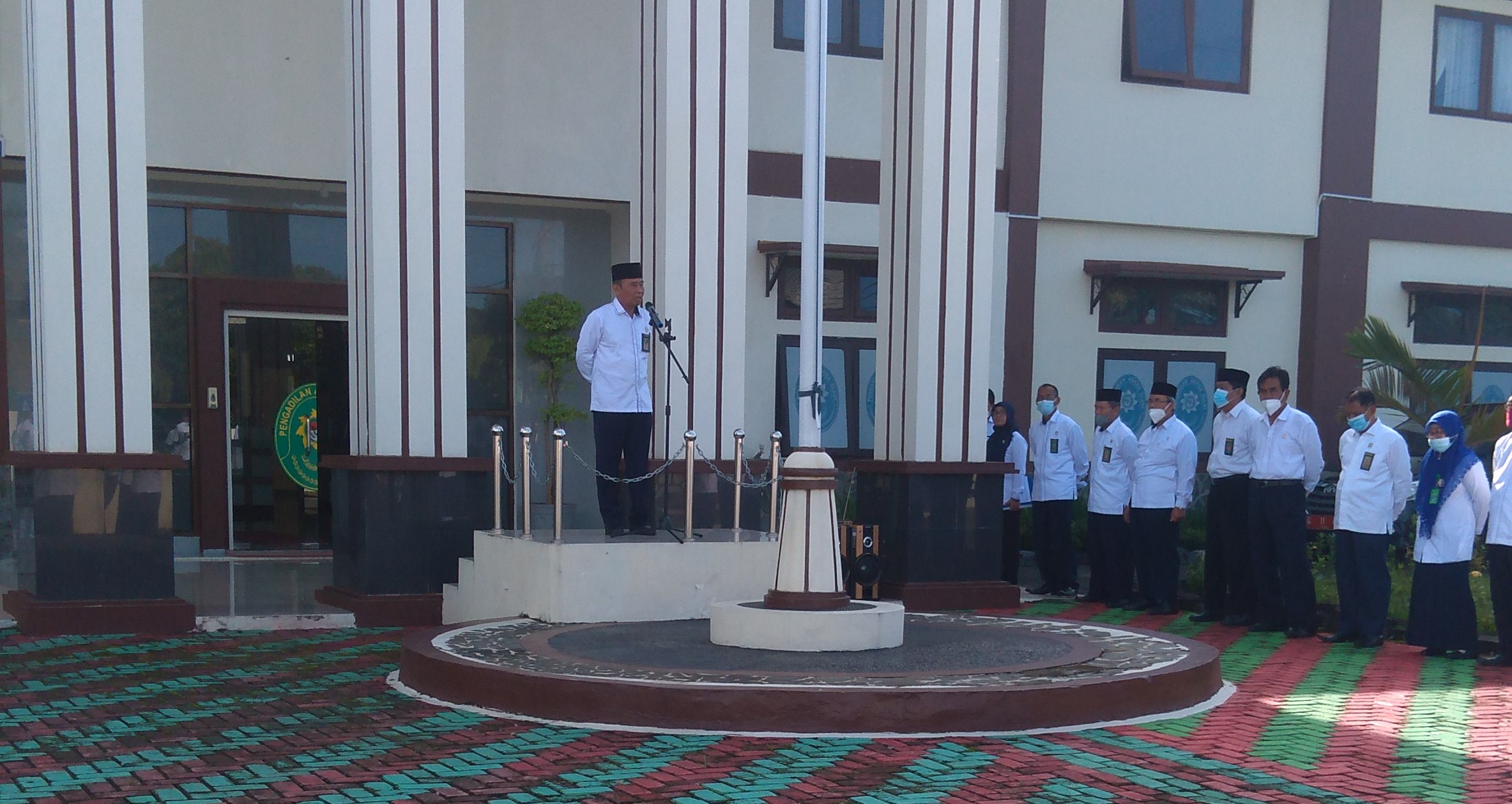 Senin, 3 Januari 2022 tepat jam 08.00 pagi di Halaman depan kantor, apel pagi awal tahun 2022 dimulai dengan susunan petugas Ketua Pengadilan Agama Slawi Drs. H. Abd. Basyir M.Ag. sebagai Pembina Apel, Alfa Sakan, SE komandan apel, Drs. Slamet Bisri pemimpin Do’a, dan Rini Tri Widy Astuti sebagai MC.