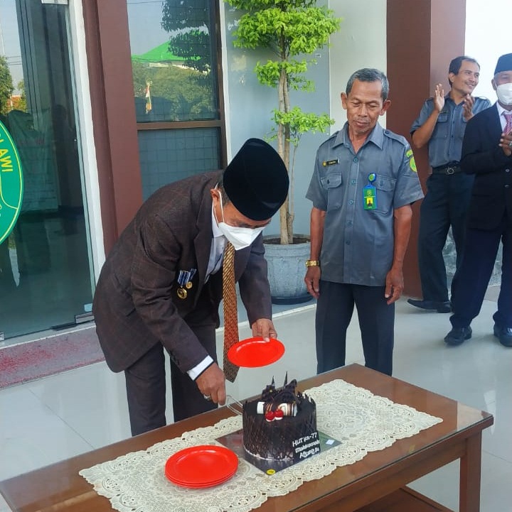 Jum’at, 19 Agustus 2022. Dalam rangka Perayaan Hari Ulang Tahun Mahkamah Agung Republik Indonesia ke-77 tahun, Pengadilan Agama Slawi melaksanakan kegiatan Apel Pagi di halaman kantor. Ketua Pengadilan Agama Slawi Drs. H. Abd. Basyir, M.Ag. menjadi pembina Apel pagi hari ini, dengan pemimpin Apel Pegawai Pengadilan Agama Slawi Alfian Nur Fauzi. Setelah kegiatan Apel, acara kemudian dilanjutkan dengan pemotongan kue oleh Ketua Pengadilan Agama Slawi. Dirgahayu Mahkamah Agung Republik Indonesia ke-77 tahun, mari “Bangkit Bersama Tegakkan Keadilan”
