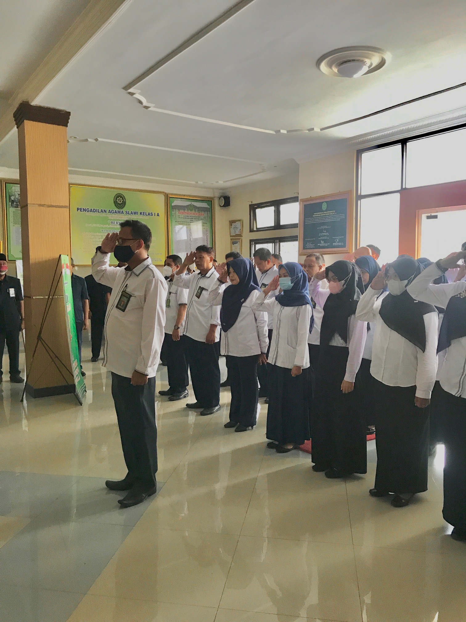 Senin, 23 Mei 2022. Pengadilan Agama Slawi Kelas IA melaksanakan kegiatan rutin Apel Pagi. Kegiatan Apel Pagi kali ini dilaksanakan di lobby Pengadilan Agama Slawi dikarenakan cuaca yang kurang mendukung untuk melaksanakan kegiatan di Halaman Kantor Pengadilan Agama Slawi. Pembina Apel pada pagi hari ini yaitu Drs. Fatkhul Yakin, S.H.,M.H.