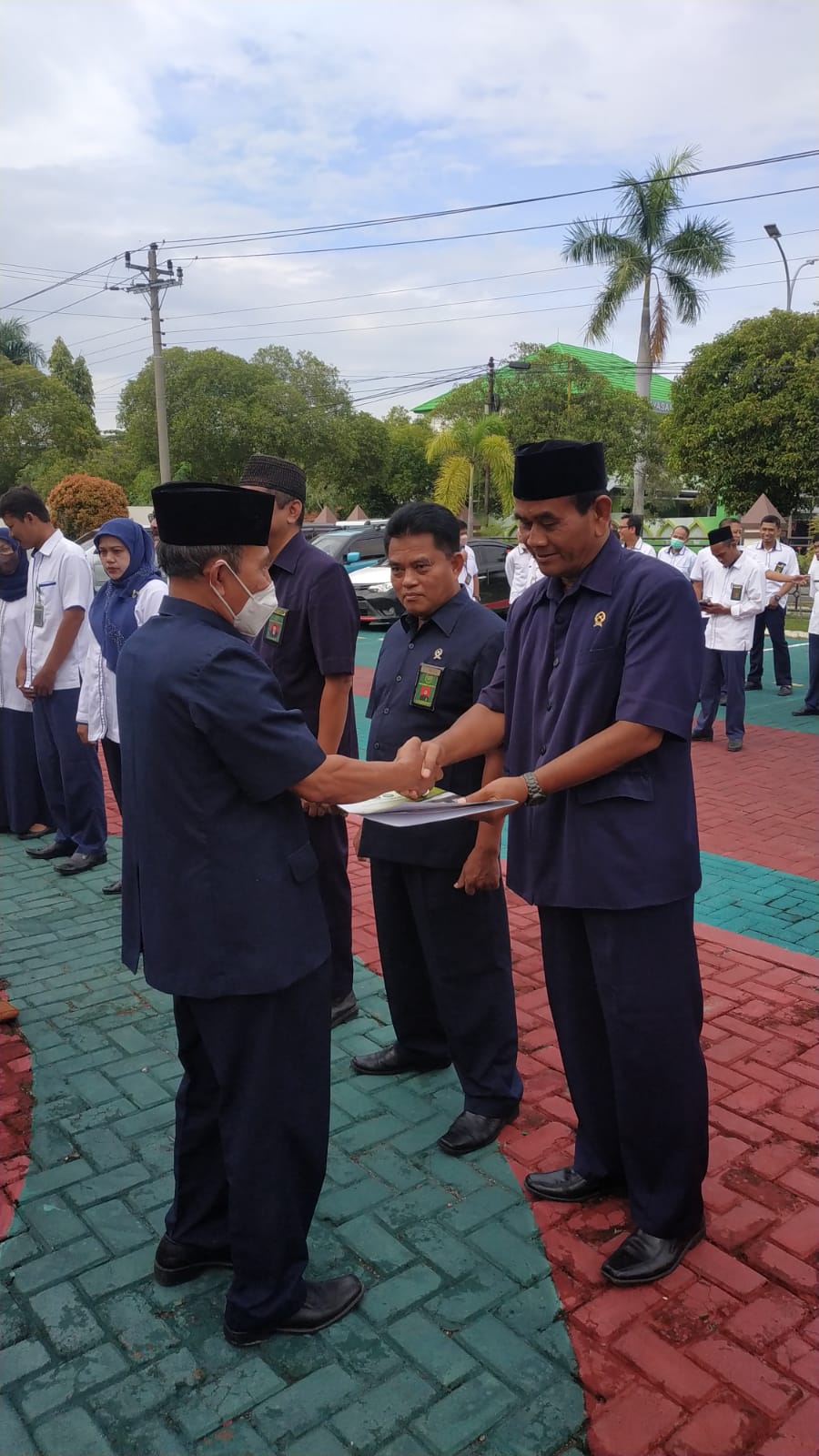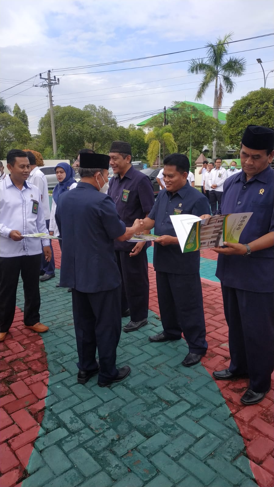 Penyerahan penghargaan diserahkan langsung oleh Ketua Pengadilan Agama Slawi Drs. H. Abd. Basyir, M.Ag., didampingi oleh Wakil Ketua Pengadilan Agama Slawi Azimar Rusydi, S.Ag.,M.H., sesaat sebelum apel pagi ditutup oleh Komandan Apel.