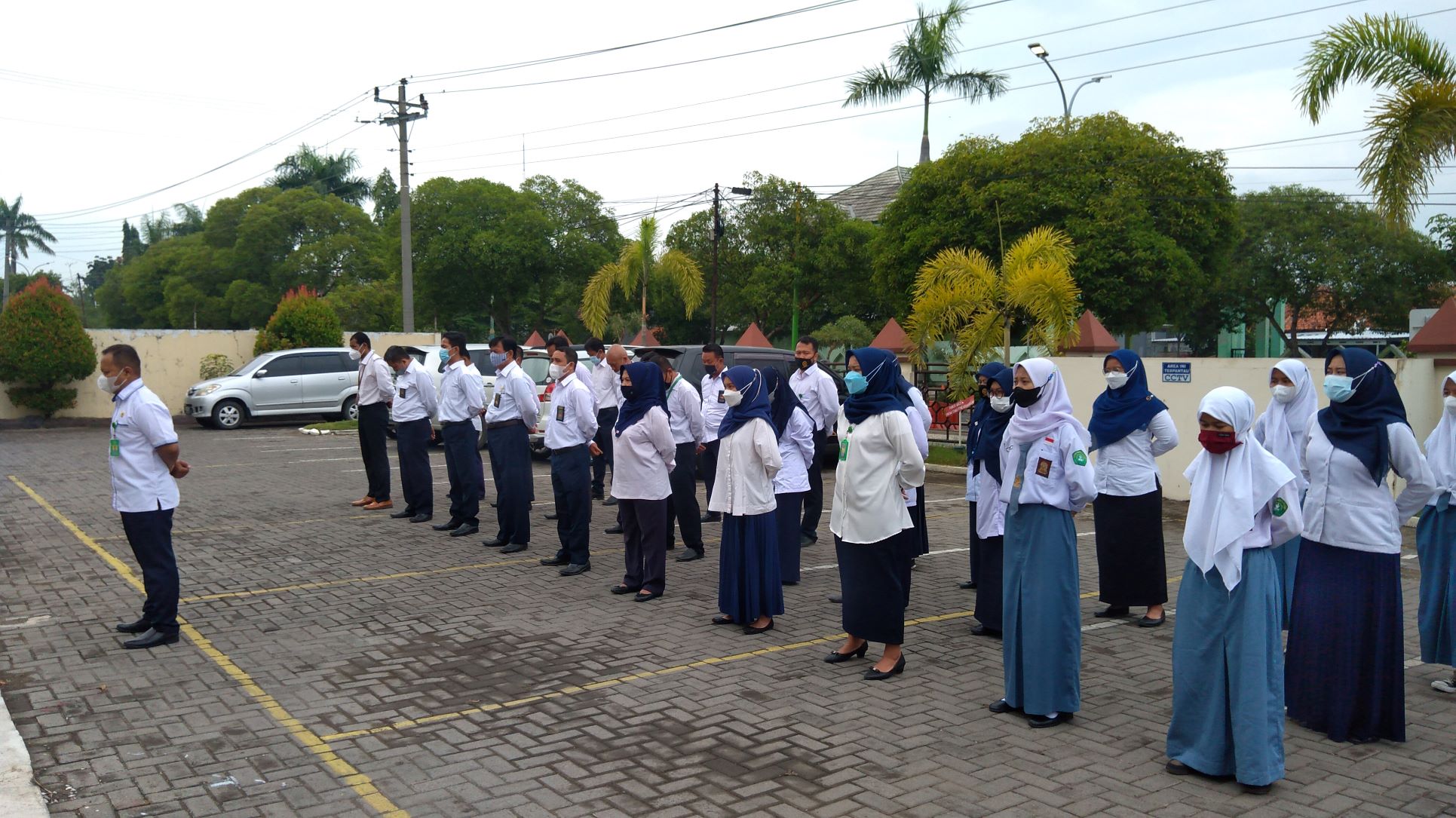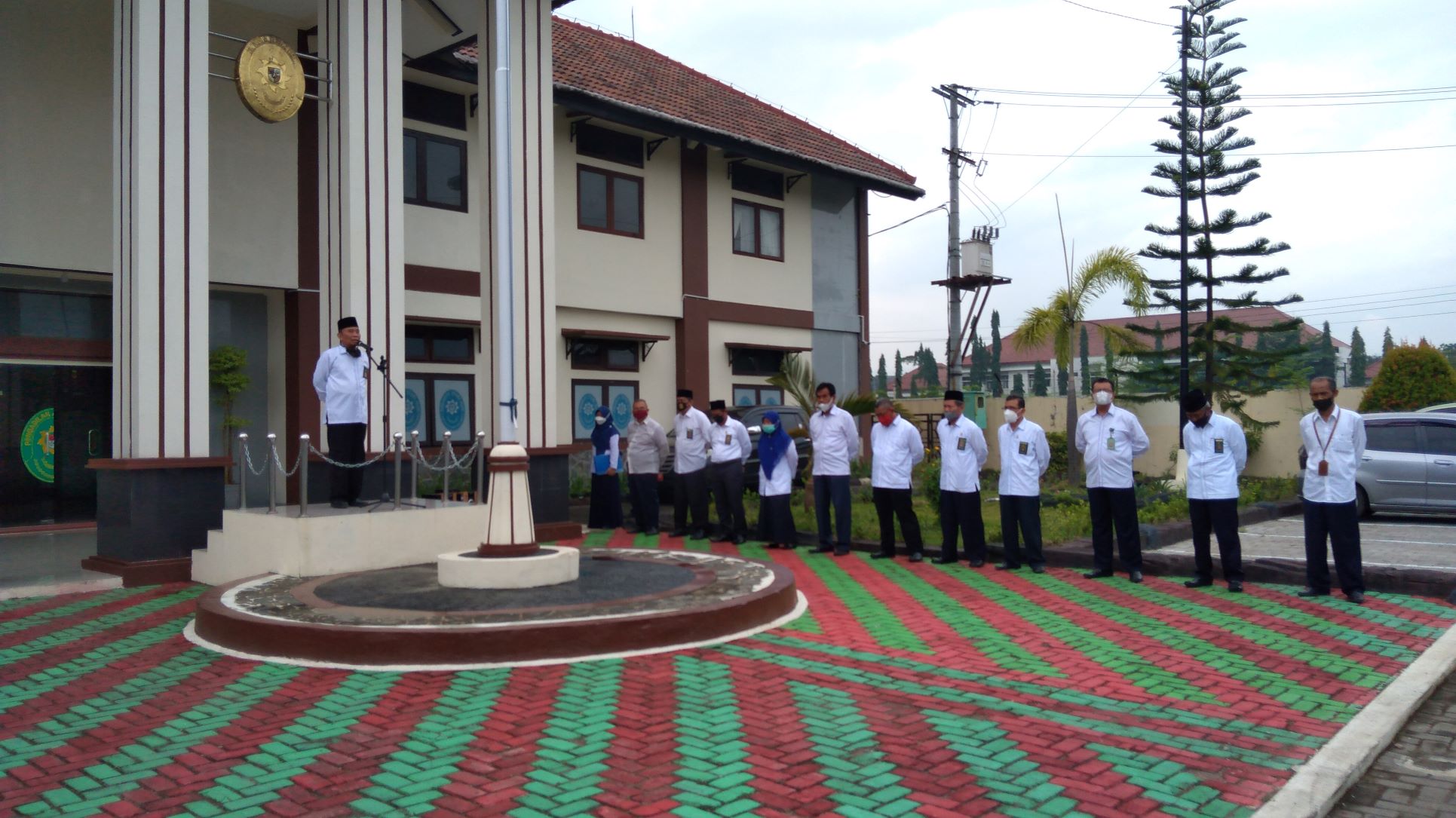 Senin, (18/10/2021) Pkl.08.00 WIB. Bertempat di halaman kantor Pengadilan Agama Slawi Kelas IA melaksanakan apel Senin pagi yang diikuti seluruh Hakim, Pejabat Struktural, Pejabat Fungsional, para Staff dan Tenaga Honorer PA Slawi. Bertindak selaku Pembina apel adalah Ketua Pengadilan Agama Slawi, Drs. H. Abd. Basyir, M.Ag. Bertindak sebagai komandan apel Moh. Rizal Fahmi dan pembawa acara Vara Dyasti Ulkha.