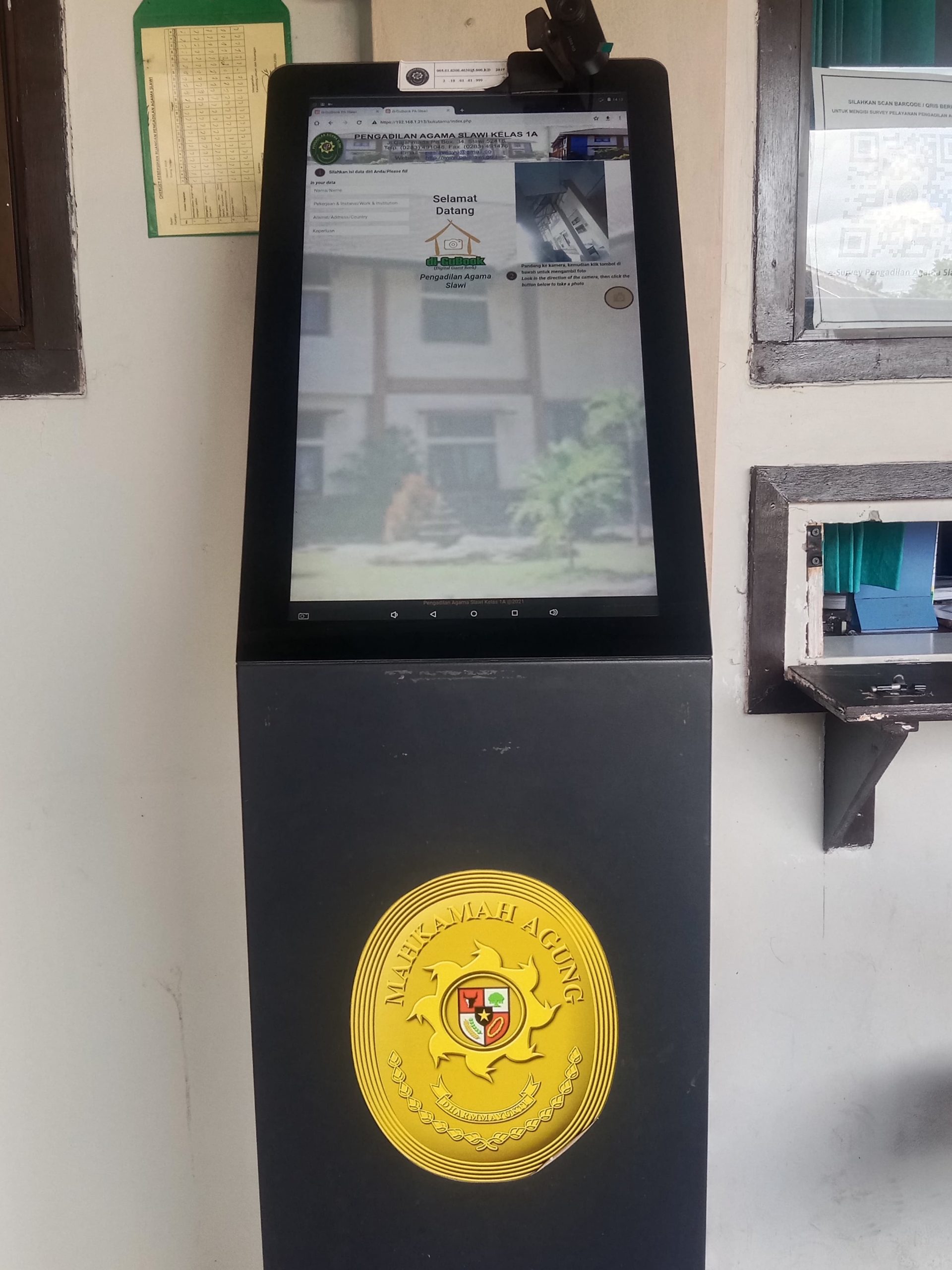di-GuBook adalah aplikasi buku tamu digital (Digital Guest Book) berbasis web (localhost). Aplikasi ini ditayangkan pada stand-tab di resepsionis. Setiap tamu yang dating ke Kantor Pengadilan Agama Slawi melalui resepsionis, harus mengisi buku tamu digital ini, dengan mengisi data diri : nama, pekerjaan, alamat, keperluan dan capture foto. Selanjutnya di-GuBook akan menyimpan data tamu pada database.
