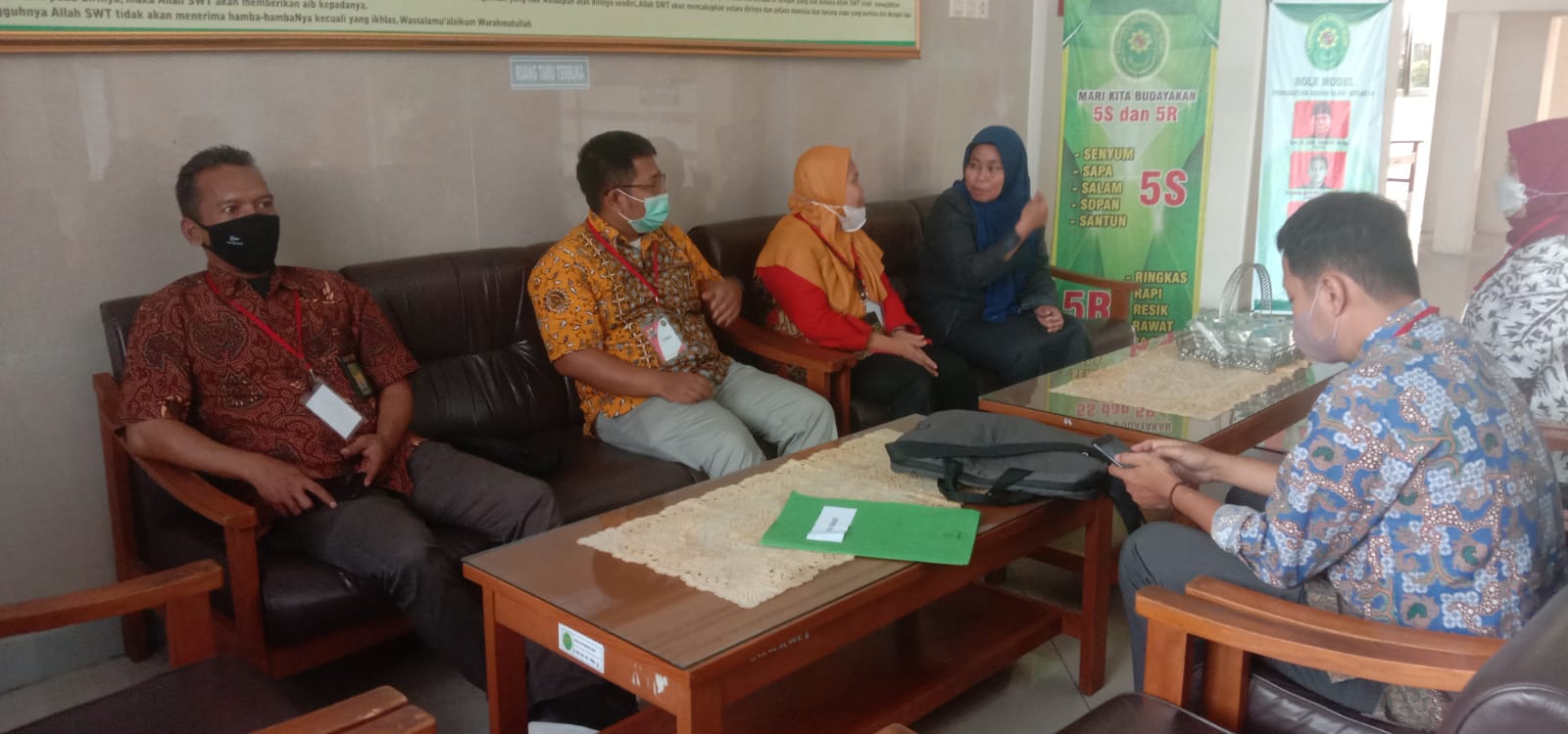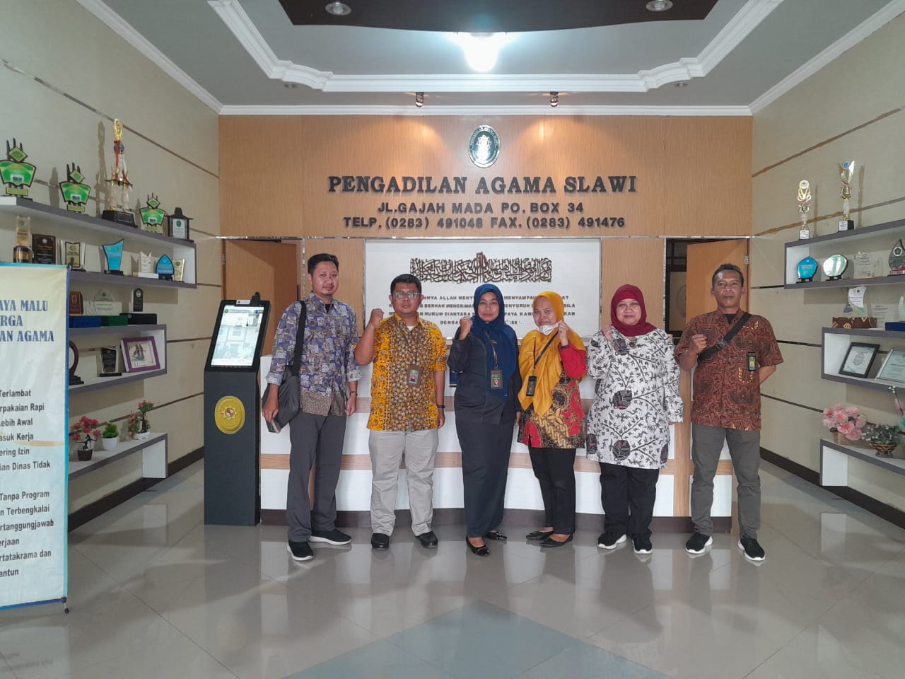 Rabu, 23 November 2022. Kepala Sub Bagian Kepegawaian dan ORTALA Pengadilan Agama Slawi Nur Khikmah, S.H.I., menerima kedatangan tim pelaksana dan petugas verifikasi Direktur Jendral Badan Peradilan Agama di Pengadilan Agama Slawi. Sesuai dengan surat tugas dari Direktur Pembinaan Tenaga Teknis Peradilan Agama nomor : 505/DjA.2/ST/11/2022, tim ini beranggotakan 5 (lima) orang diantaranya 2 (dua) orang Kasi yaitu Kasi Data dan Informasi Tenaga Teknis Peradilan Dziya Ulhaq, S.Kom., M.M., dan Kasi Evaluasi dan Pelaporan Wijayanti, S.H., serta 3 (tiga) orang stafnya yaitu Tri Surya Fajar, S.H., Achmad Ramadhon, dan Azizah Mufidati. Kehadiran mereka terkait dengan pelaksanaan kegiatan Verifikasi dan Validasi Data Kepegawaian Tenaga Teknis Peradilan Agama tahap II.