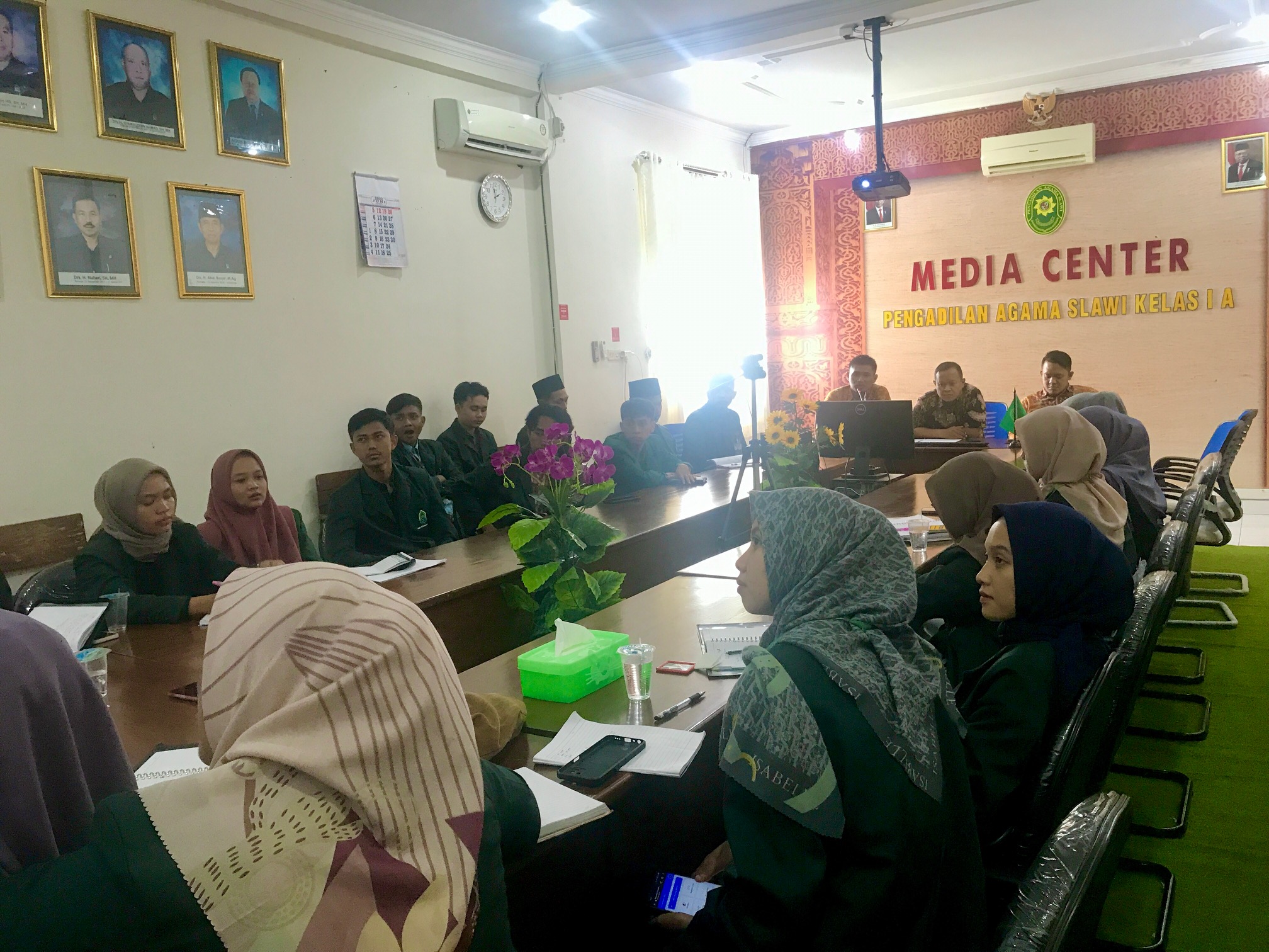 Kamis, 21 Juli 2022. Kassubag Perencanaan, TI, dan Pelaporan (PTIP) Alfa Sakan, S.E., bersama staf PTIP Ali Habsy, A.Md. dan Moh. Rizal Fahmi memberikan pembekalan kepada Mahasiswa UIN K.H. Abdurrahman Wahid yang sedang melaksanakan kegiatan PPL di Pengadilan Agama Slawi. Materi pembekalan berkaitan dengan Pemanfaatan Teknologi Informasi di lingkungan Pegadilan Agama Slawi. Pemberian materi dimulai sejak pukul 13.00 WIB bertempat di Media Center Pengadilan Agama Slawi Kelas IA.