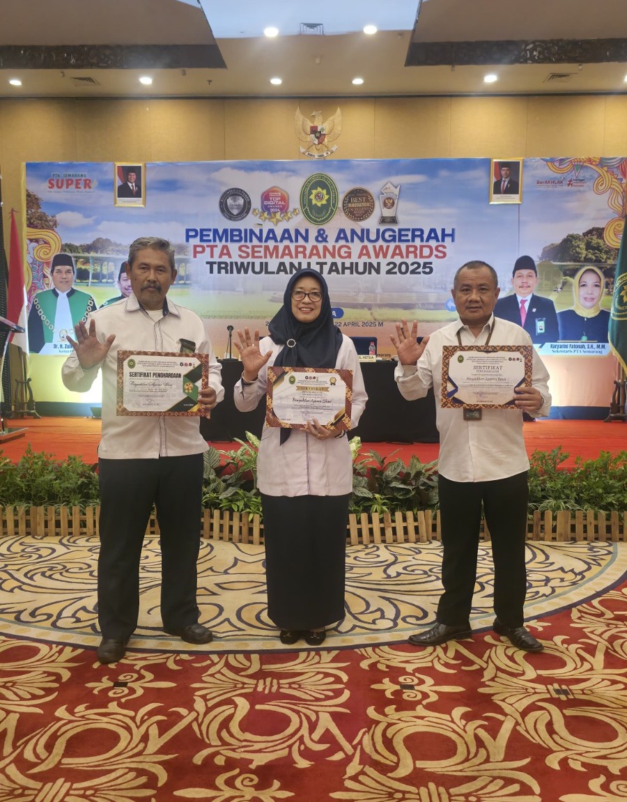 Ketua Pengadilan Agama Slawi Dr. Yuniati Faizah, S.Ag., S.H., M.SI. bersama Panitera Tokhidin, S.Ag., M.H. dan Sekretaris Dedeng Jaelani, S.H. menghadiri Acara Pembinaan dan Penganugerahan Pengadilan Tinggi Agama Semarang Awards yang dijadwalkan berlangsung selama 2 (dua) hari, mulai dari tanggal 21 hingga 22 April 2025.