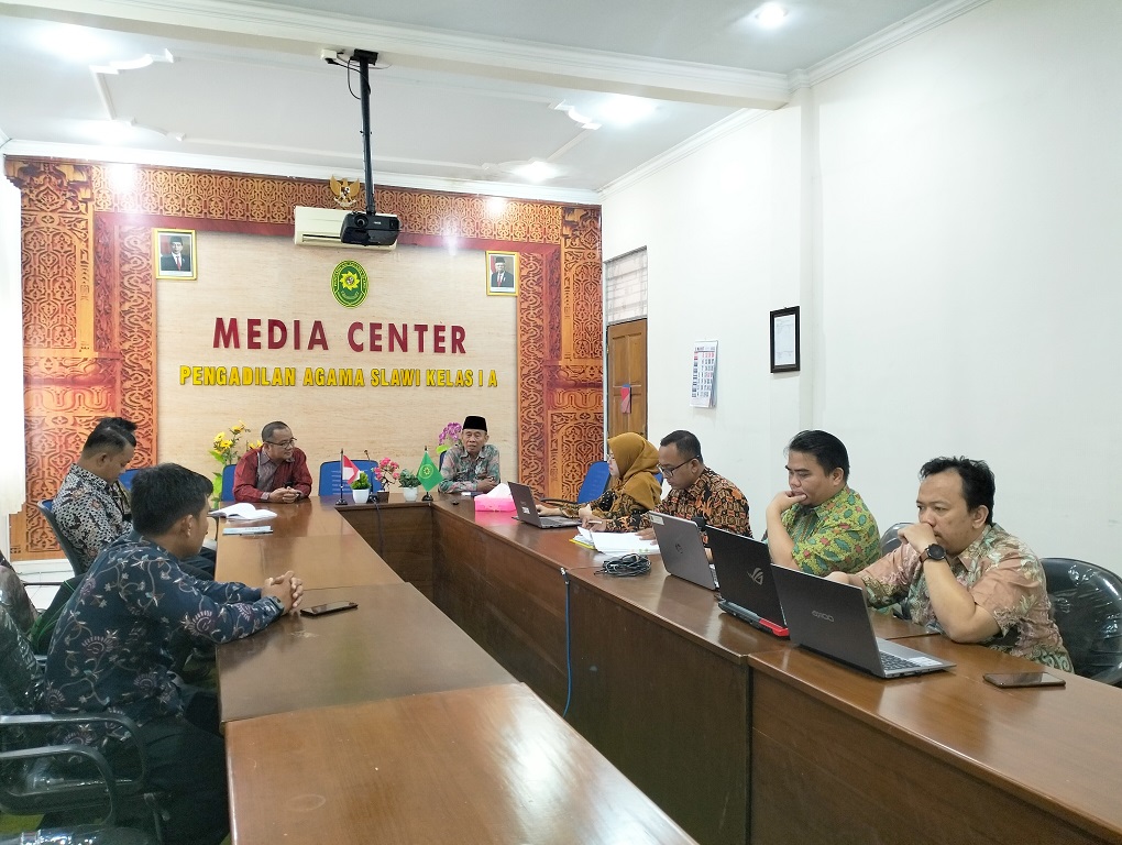 Jum’at tanggal 31 Maret 2023, Kelompok Kerja (POKJA) Renovasi Gedung Pengadilan Agama Slawi hadir di ruang Media Center Pengadilan Agama Slawi. Kehadiran mereka didasari oleh Surat Undangan Pengadilan Agama Slawi tanggal 29 Maret 2023 nomor W11-A34/1374/PL.01/III/2023 perihal Rapat Koordinasi. Rapat hari ini dibuka langsung oleh Ketua Pengadilan Agama Slawi Drs. H. Abd. Basyir, M.Ag.. Adapun peserta rapat yaitu Sekretaris Pengadilan Agama Slawi Dedeng Jaelani S.H., Kasubag Umum dan Keuangan Mirza Assidiqi, S.Kom., Kasubag PTIP Alfa Sakan, S.E., Kasubag Kepegawaian dan ORTALA Nur Khikmah, S.H.I., dan para anggota POKJA yang berasal dari Pengadilan Agama Pemalang, Pengadilan Agama Magelang, Pengadilan Agama Demak, Pengadilan Agama Salatiga, dan Pengadilan Agama Pekalongan.
