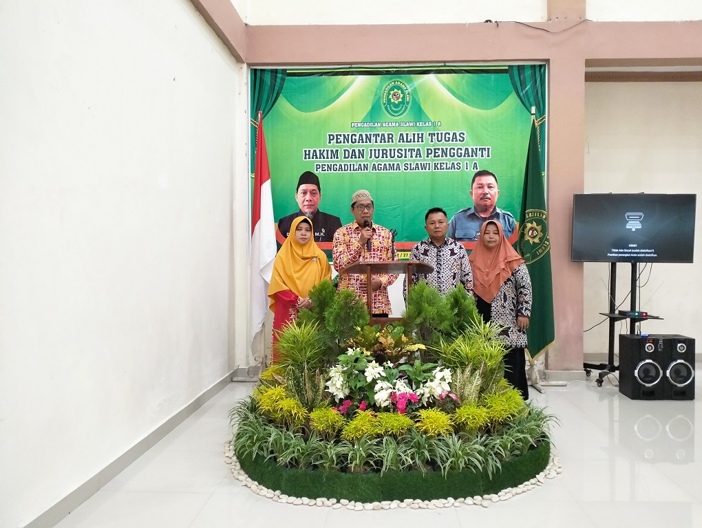 Senin tanggal 20 Maret 2023 bertempat di Ruang Sidang Muadz bin Jabal Pengadilan Agama Slawi diselenggarakan acara Pengantar Alih Tugas Hakim dan Jurusita Pengganti Pengadilan Agama Slawi Kelas IA. Berdasarkan Hasil Rapat Tim Promosi Mutasi Hakim Mahkamah Agung Republik Indonesia Tahun 2023 di Jakarta pada Tanggal 13 Februari 2023, Hakim Pengadilan Agama Slawi Kelas IA Drs. Amroni, M.H. menerima jabatan baru sebagai Hakim Pengadilan Agama Brebes Kelas IA.