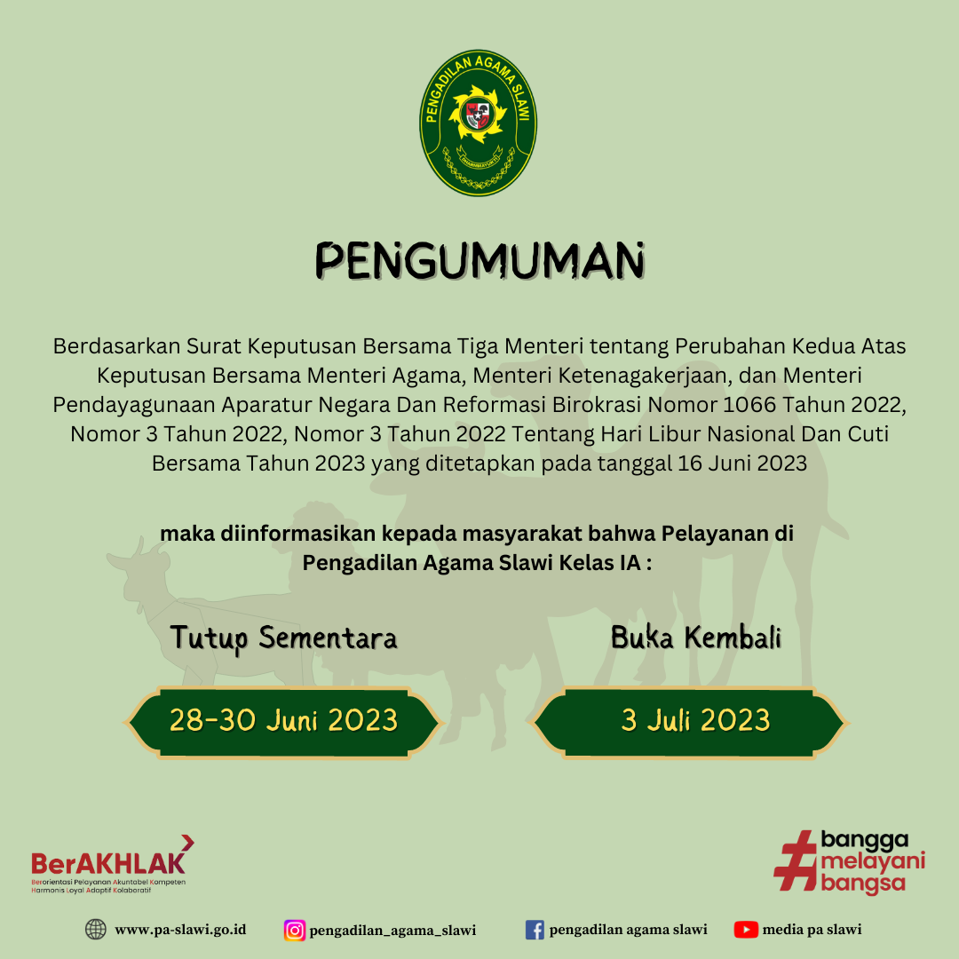 PENGUMUMAN LIBUR CUTI BERSAMA IDUL ADHA 1444 H