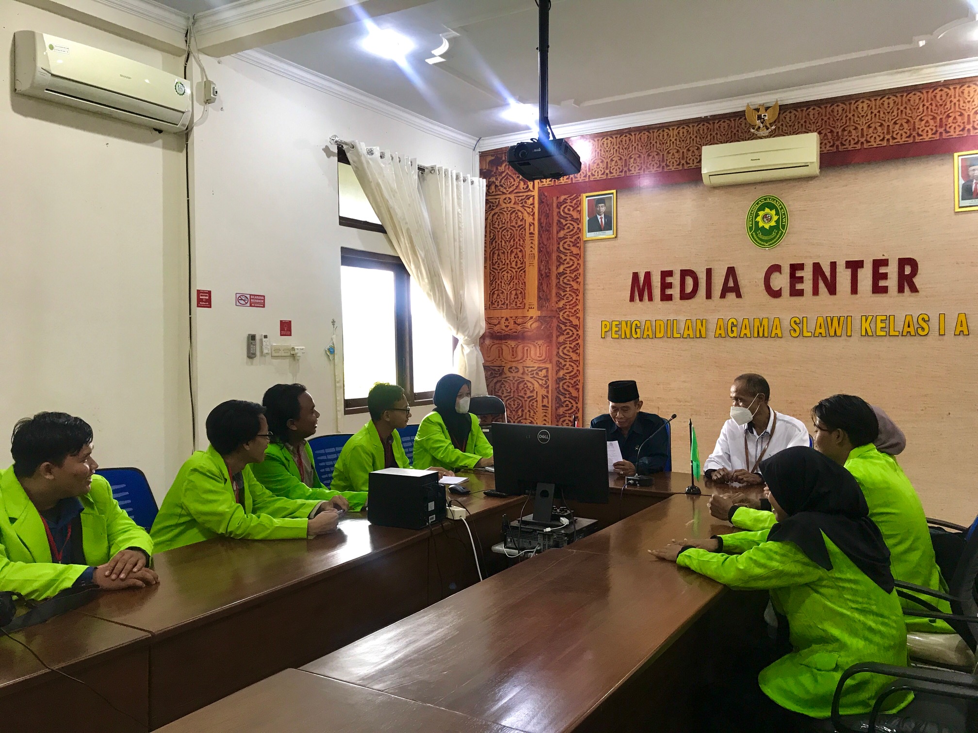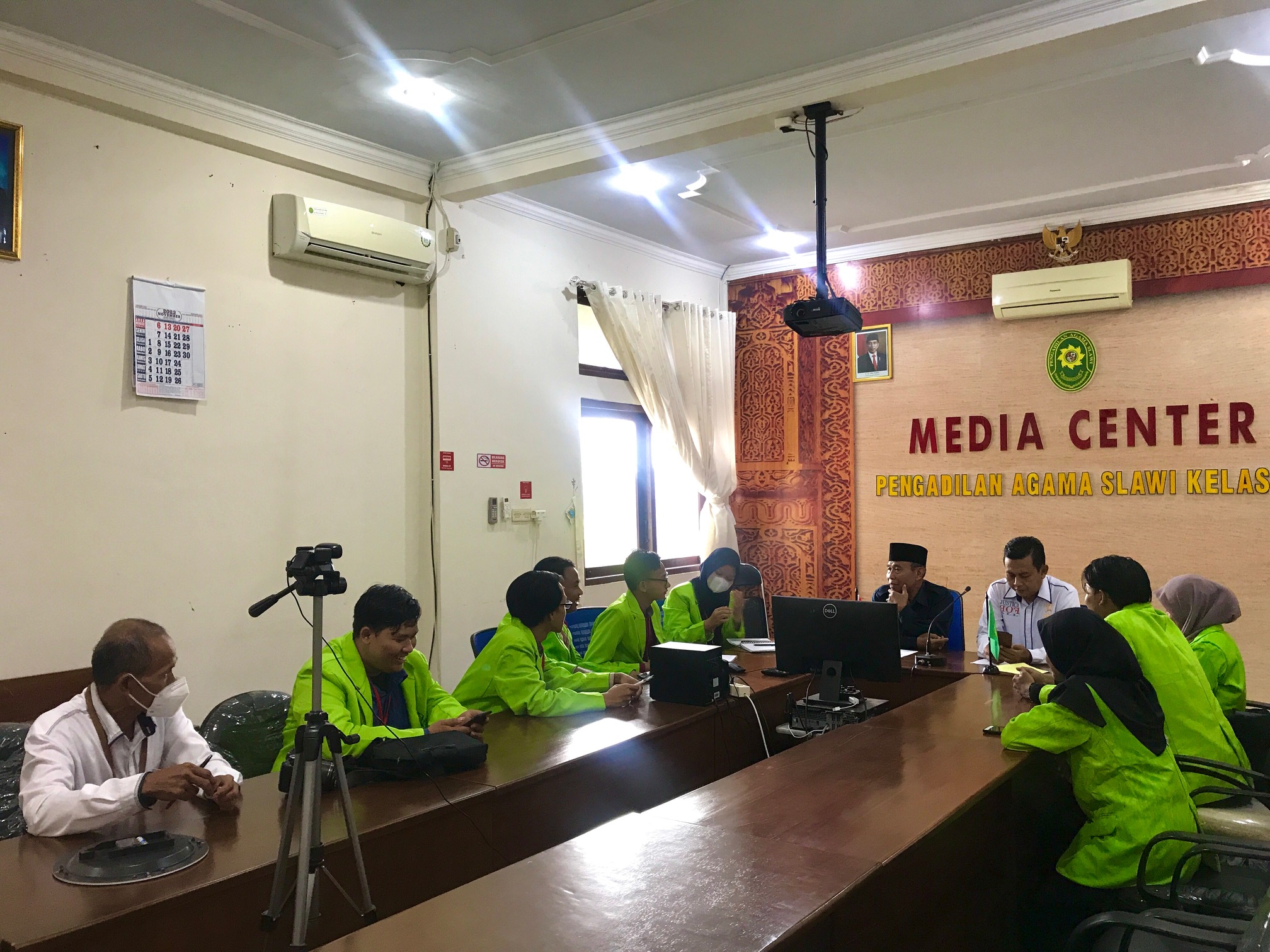 Senin, 14 November 2022. Merujuk pada Surat Kementrian Agama Republik Indonesia Universitas Islam Negeri Walisongo Semarang Fakultas Syari’ah dan Hukum Nomor B-6027/Un.10.1/D1/PP.00.09/10/2022 Perihal Surat Pengantar Pra-Riset Kolaboratif, Ketua Pengadilan, Wakil Ketua Pengadilan, dan Sekretaris Pengadilan Agama Slawi menerima kedatangan 8 orang mahasiswa Universitas Islam Negeri Walisongo Semarang di Ruang Media Center. Kedatangan para mahasiswa tersebut dalam rangka melengkapi bahan-bahan penyusunan tugas akhir mata kuliah Fiqih Munakahat berupa mini riset kolaboratif. Judul penelitian kolaboratif yang diangkat yaitu Implementasi Perubahan Batas Usia Nikah dalam Undang-Undang No. 16 tahun 2019 terhadap Permohonan Dispensasi Perkawinan di Pengadilan Agama Slawi IA, Kabupaten Tegal. Kegiatan pra riset ini akan berlangsung selama 1 bulan kedepan.