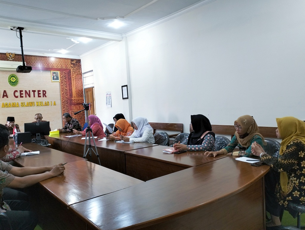 Bertempat di Ruang Media Center Pengadilan Agama Slawi hari Kamis tanggal 24 November 2022, panita penandatanganan MoU mengadakan rapat. Kegiatan rapat ini dipimpin langsung oleh Ketua Pengadilan Agama Slawi Drs. H. Abd. Basyir, M.Ag. Dalam rapatdibahas mengenai kesiapan dan kendala tiap bidang terkait persiapan kegiatan penandatanganan MoU yang akan dilaksanakan pada hari Jum’at tanggal 25 November 2022. Penandatanganan MoU akan dilaksanakan oleh Pengadilan Agama Slawi bersama Lembaga Pemasyarakatan Kelas IIB Slawi. Selain penandatanganan MoU, akan dilaksanakan juga kegiatan Sosialisasi dan Implementasi Perjanjian Kerjasama melalui Aplikasi JAMU KUAT (Kerjasama Mewujudkan Keadilan Untuk Masyarakat).