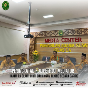 Sekretaris Pengadilan Agama Slawi Dedeng Jaelani, S.H. bersama Kasubag Umum dan Keuangan Mirza Assidiqi, S.Kom., Kasubag Kepegawaian dan Ortala Nur Khikmah, S.H.I., serta Kasubag Perencanaan, IT, dan Pelaporan Alfa Sakan, S.E. melaksanakan Rapat Bagian Kesekretariatan pada Senin tanggal 27 Maret 2023. Rapat yang diadakan di Ruang Media Center Pengadilan Agama Slawi ini, didasari dengan Surat Undangan Rapat Bagian Kesekretariatan nomor W11-A34/1346/OT.00/III/2023. Dalam rapat dibahas terkait dokumen-dokumen awal tahun yang masih harus diselesaikan serta estimasi biaya pindah kantor sementara. Rencana pindah kantor ini merupakan bagian dari pelaksanaan renovasi gedung Pengadilan Agama Slawi yang akan segera dimulai.