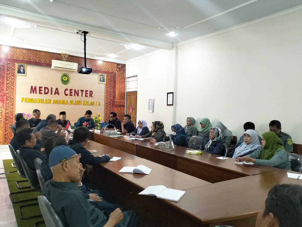 Berdasarkan surat Undangan Rapat nomor: W11-A34/1210/Kp.04.6/III/2023 tanggal 9 Maret 2023, diadakan Rapat Tindak Lanjut Hasil Temuan Pengawasan Reguler di Pengadilan Agama Slawi. Rapat yang semula dijadwalkan pada Jum’at tanggal 10 Maret 2023 mengalami sedikit hambatan, sehingga jadwal rapat terpaksa mundur menjadi hari Selasa tanggal 14 Maret 2023 Rapat yang dipimpin oleh Ketua Pengadilan Agama Slawi Drs. H. Abd. Basyir, M.Ag. berlangsung di Ruang Media Center Pengadilan Agama Slawi. Dalam rapat dibahas terkait temuan-temuan Hasil Pemeriksaan oleh Tim Pengawas Pengadilan Tinggi Agama Semarang yang telah diekspose pada hari Rabu tanggal 8 Maret 2023 yang lalu.