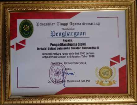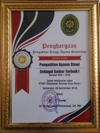 semoga lebih banyak lagi penghargaan yang diterima oleh Pengadilan Agama Slawi Kelas IA, seperti penghargaan dalam pengelolaaan keuangan, dan penghargaan lain sebagainya ujar Drs, H, Nuheri, SH, MH. Kegiatan di akhiri dengan foto bersama seluruh pegawai Pengadilan Agama Slawi Kelas IA.